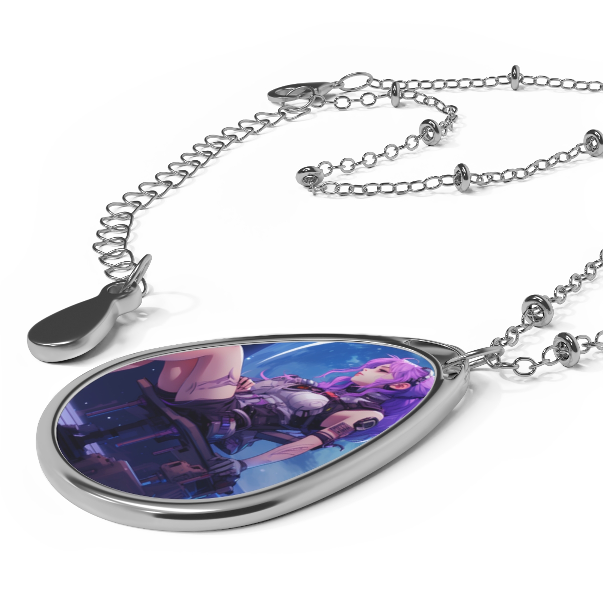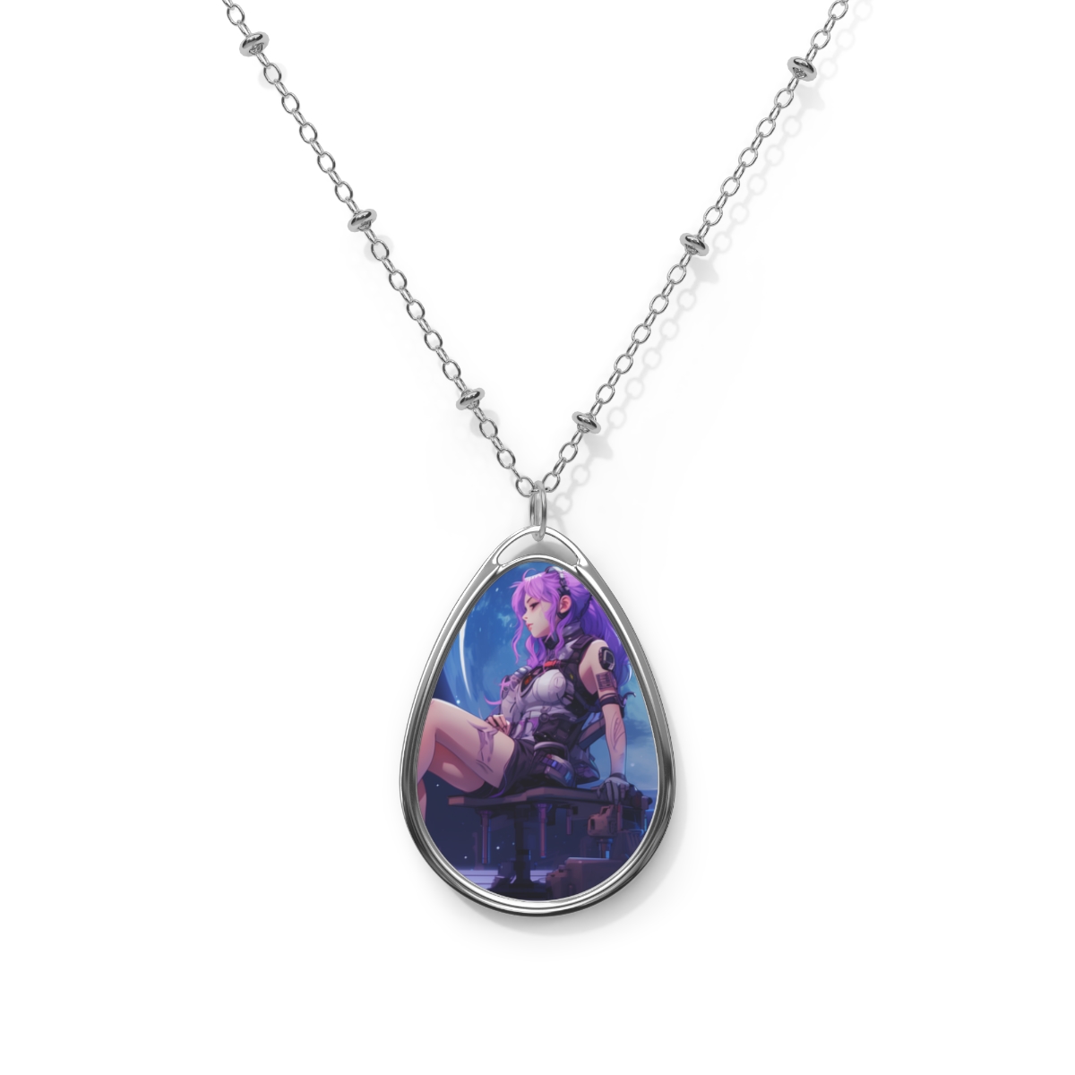 The Lunar Gaze Oval pendant and its chain are made with robust brass material for dazzling looks that are long-lasting. .: Zinc alloy pendant and necklace chain.: Ellipse-shaped pendant