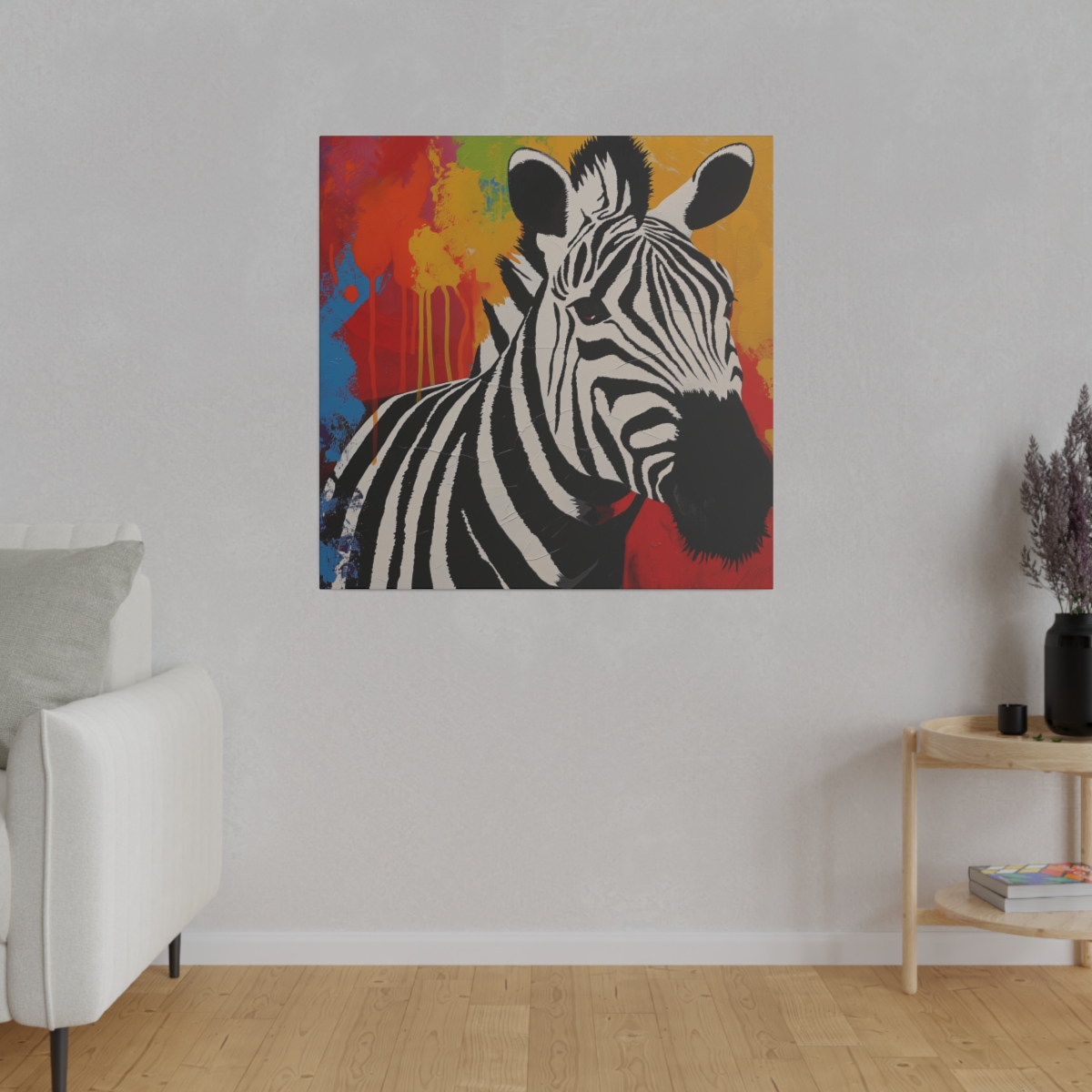The Tropical Zebra canvas comes with back hanging already included for convenient placement. The frame is made with profile radial pine that is ethically sourced from renewable forests.