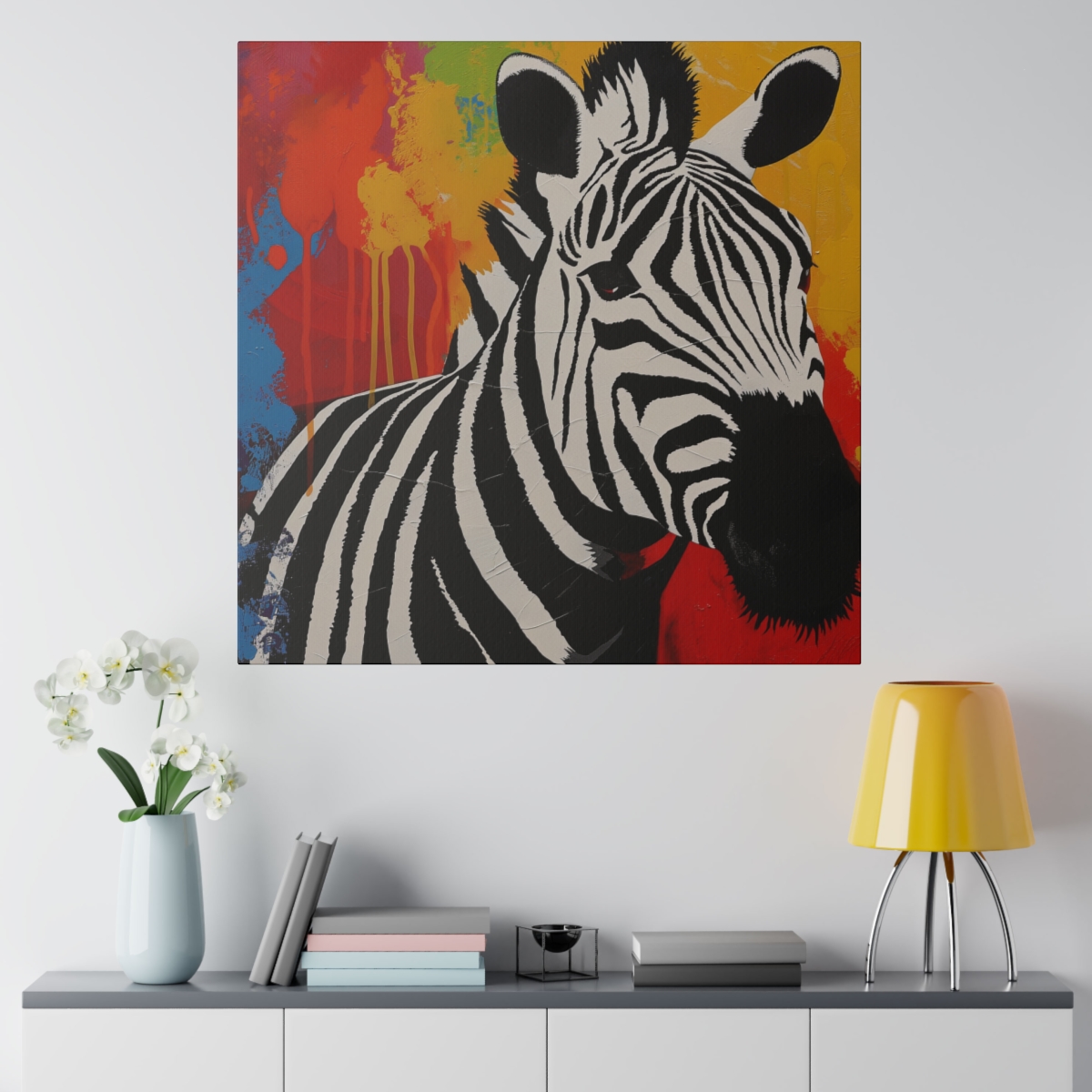 The Tropical Zebra canvas comes with back hanging already included for convenient placement. The frame is made with profile radial pine that is ethically sourced from renewable forests. .: Made with highly durable cotton and polyester canvas composite (9.82 oz/yd² (333 g/m²)) with a special proprietary coating for vibrant prints that last. .: This canvas…